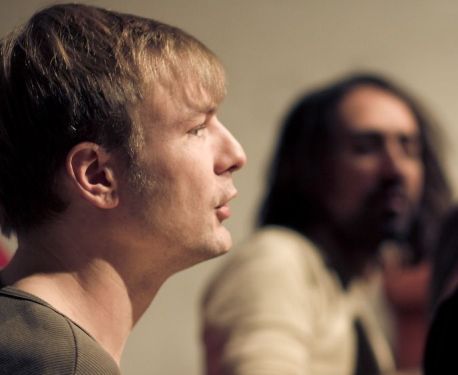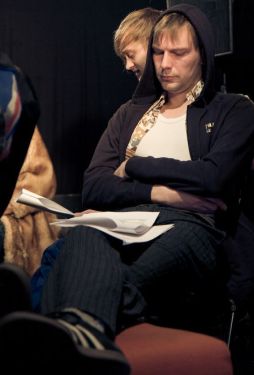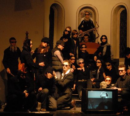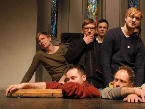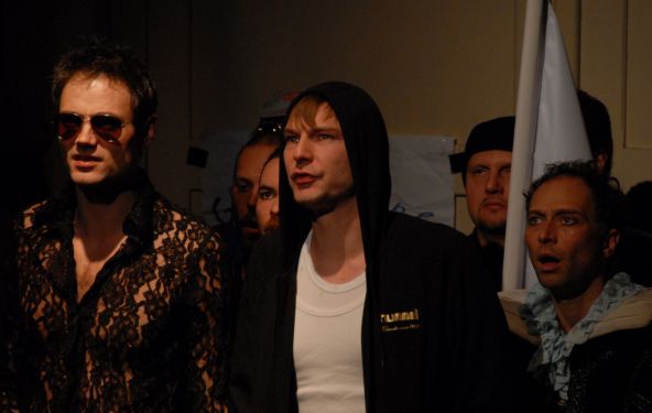 mit Kollegen des NNU als Hamletdarsteller in der Hamletfabrik nach Heiner Müller. Theaterkapelle Berlin. Regie: Uwe Schmieder. Januar 2010
